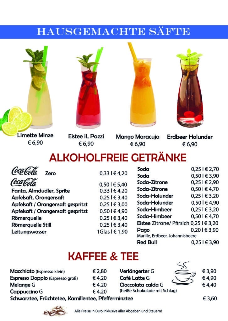 il Pazzi bedeutet die Verrückten auf italienisch. Aber ganz entgegen unseres Namens setzen wir kulinarisch auf altbewährte, schmackhafte Hausmannskost, sättigende Portionen und das zu einem ebenso bekömmlichen Preis.